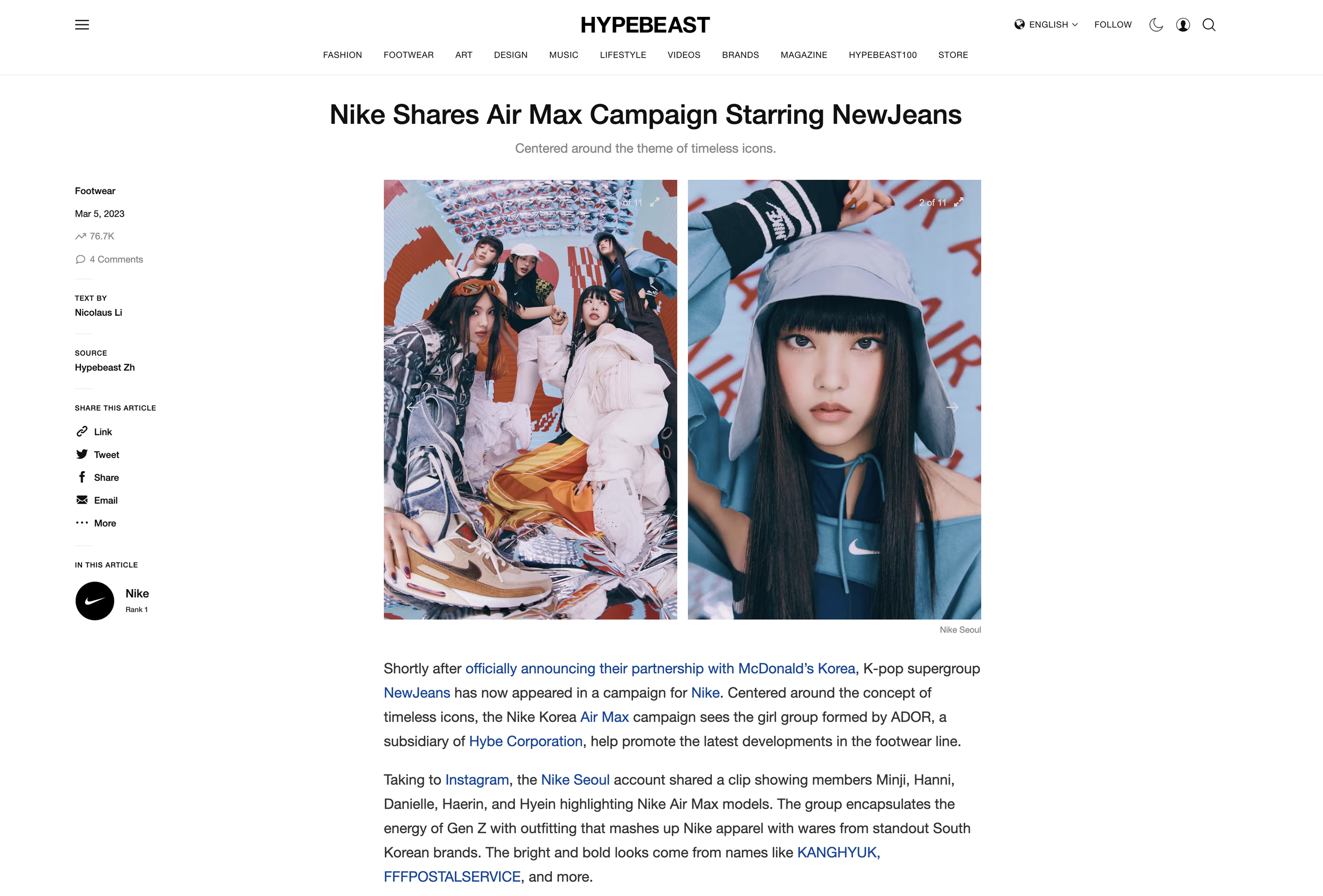 What began as an assignment for nike’s retail team grew into one of Nike Korea’s most visible campaigns. The film and visuals were picked up by nike’s brand team, and quickly spread across major fashion and sneaker media outlets including Hypebeast, Esquire, W Magazine, and VICE.